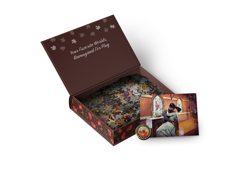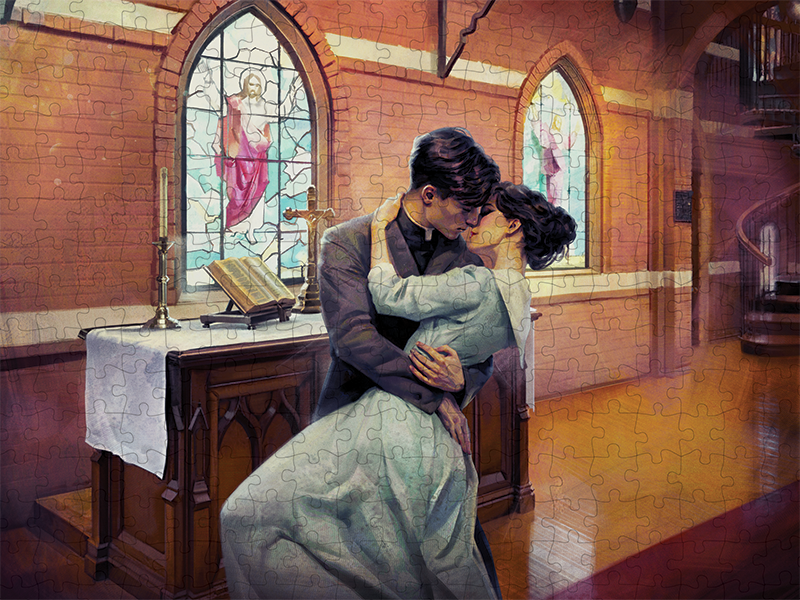 Drawn from the sacred tension at the heart of Priest, this beautifully crafted character puzzle features Father Tyler Bell and Poppy Danforth at the moment where devotion fractures and desire takes hold. This 300-piece collectible captures the quiet intensity of stolen glances, whispered confessions, and the irresistible pull between faith and temptation.