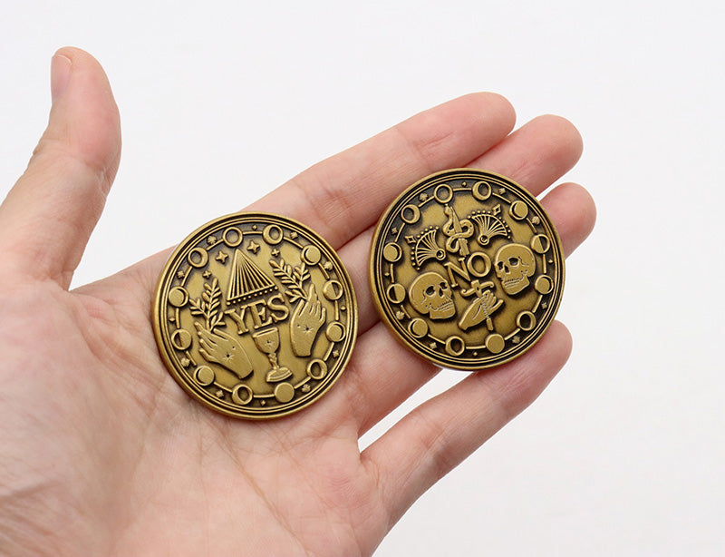 Each coin is engraved with intricate symbols representing Light and Shadow, reminding you that every choice carries duality—truth and mystery, reason and intuition. Use it to determine polarity in a reading, to open or close your tarot ritual, or to simply invite divine energy into your space.